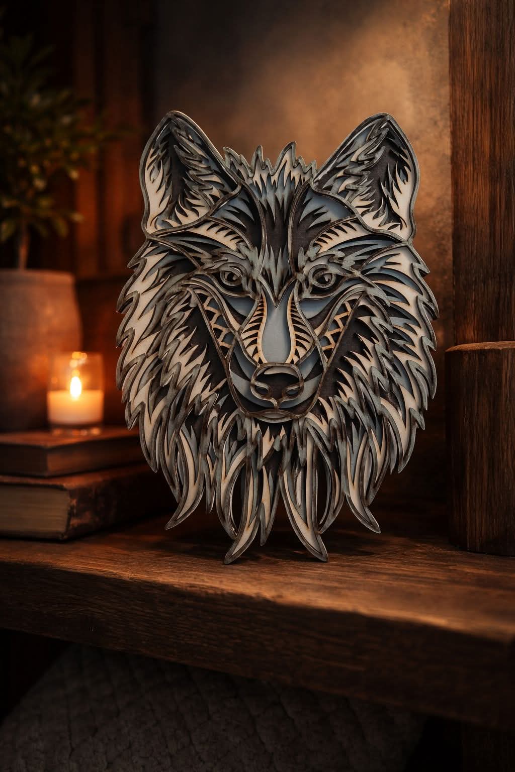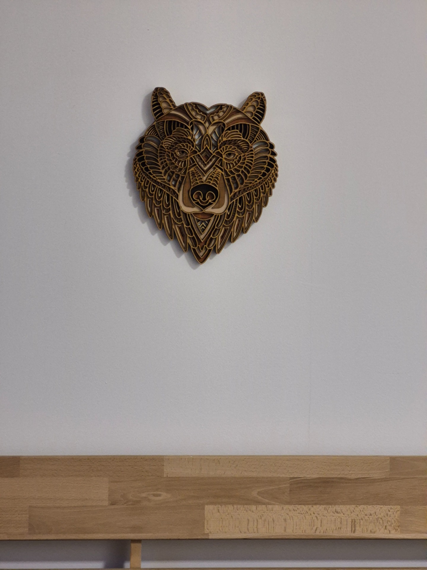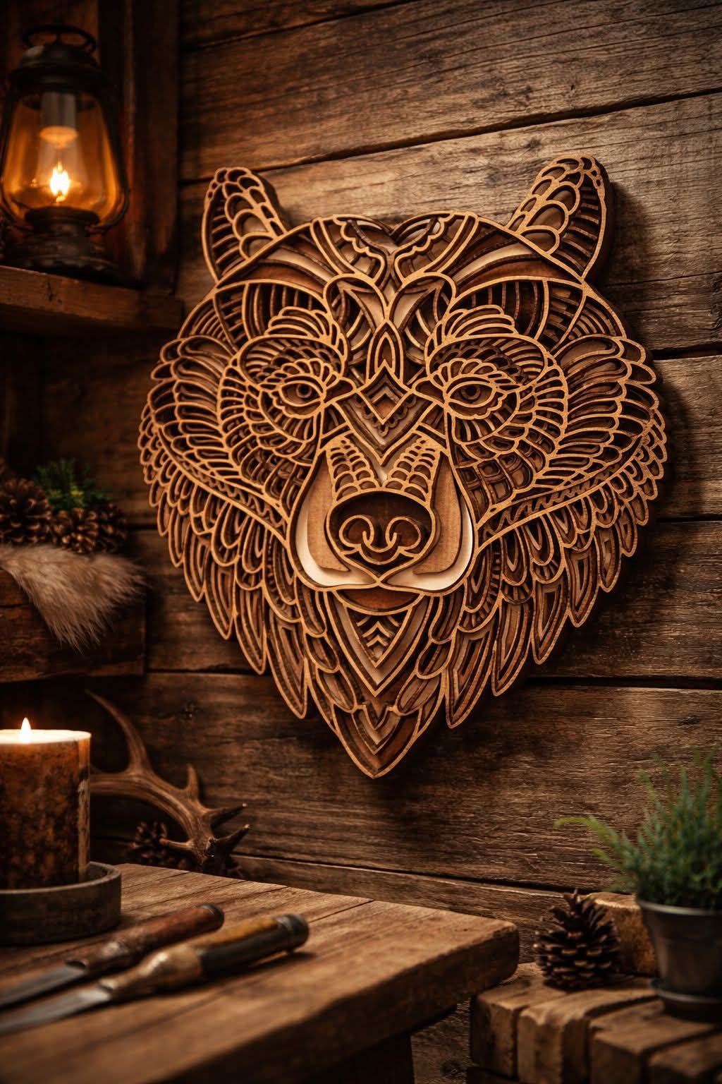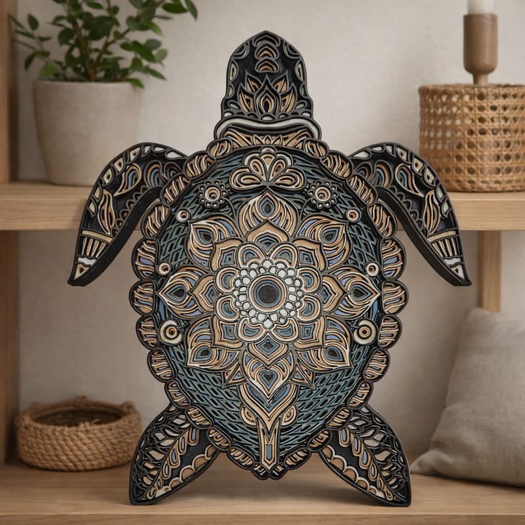 Különleges, több rétegű lézervágott mandala faldekoráció, amely természetes fa megjelenésével és részletgazdag mintájával igazi karaktert ad bármely otthonnak.